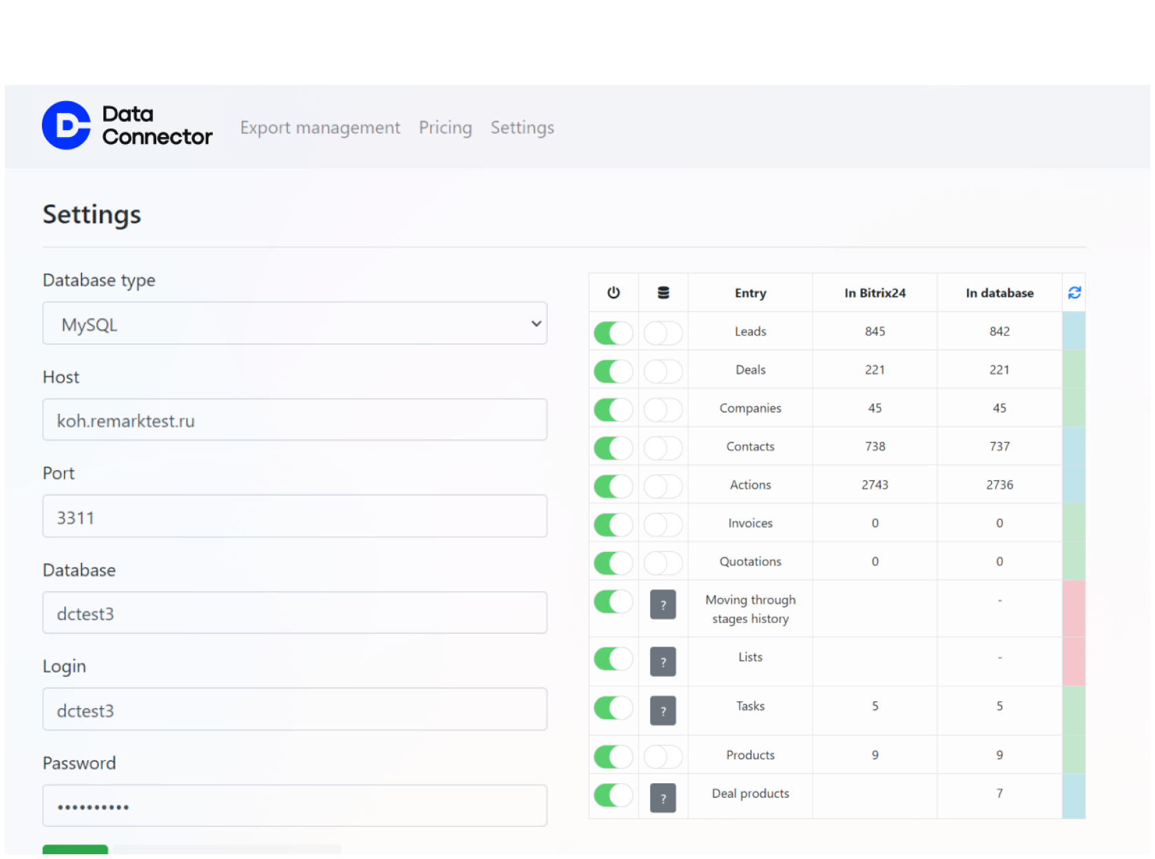 A separate database, created using the Data Connector, is used as a data repository. It contains a list of leads and key characteristics, which are updated automatically, in real time.