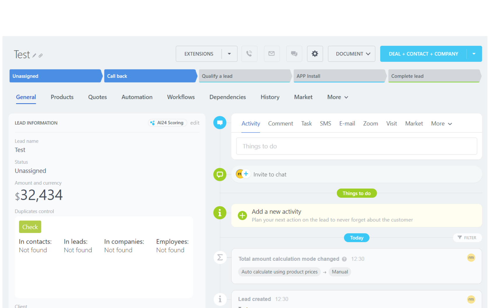 Install the application in Bitrix24, it opens automatically after installation. Go to the settings page. Install the smart field "Duplicate control" in your CRM. The app is now available in your leads and deals, set up duplicate control at any stage of the funnel.